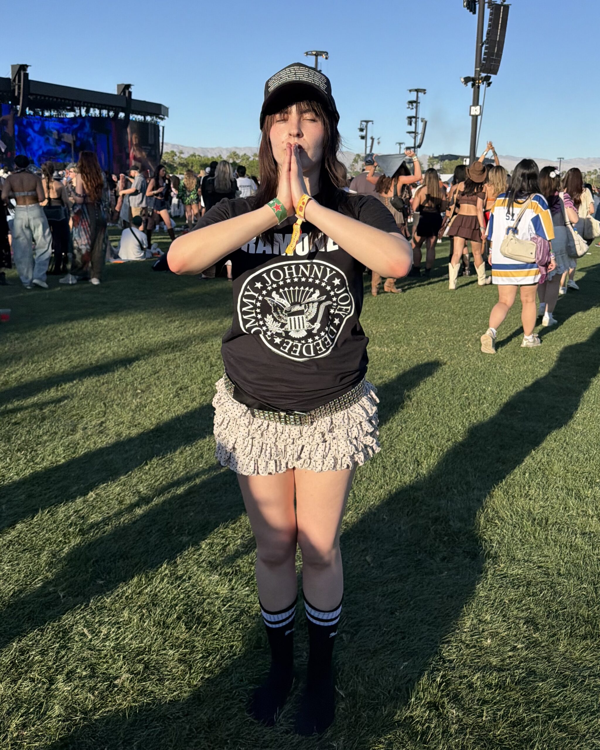 This is when the drama starts. If you’ve ever thought to yourself, “Hey, I wish I knew what it was like to flee the Titanic in a flower crown,” Coachella is your closest modern equivalent. After fighting our way to rideshare pickup, my friends begin to text me in a panic. Our names are NOT being found on the list for the KATSEYE x REVOLVE party. We make a few quick calls for PR while waiting 27(!) minutes for an Uber down the street.