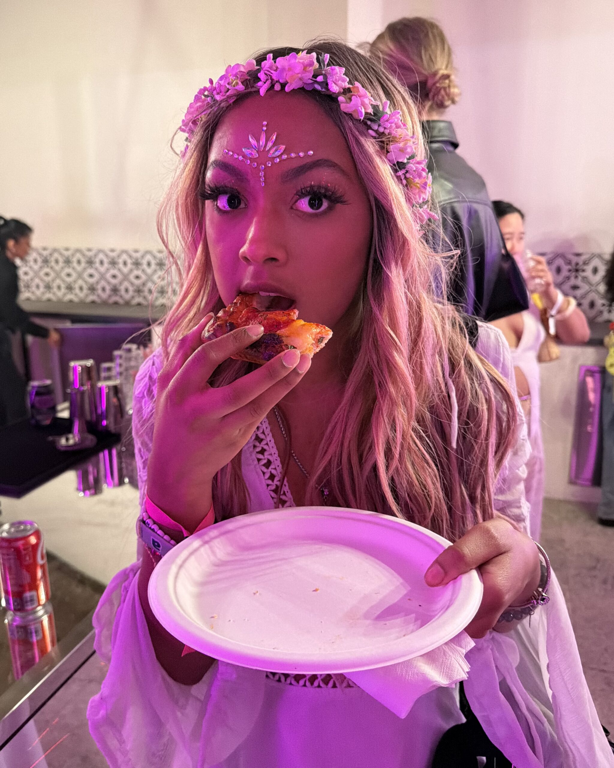 We make it to the party, and I nearly fall over in tears when I see pizza being passed to attendees. My friends and I park in a corner to refuel and then head to the dance floor. After a few drinks and a few wins from the claw-machines, we call it a night. My feet are on fire, my throat is full of dust, and I haven’t eaten a meal that wasn’t sponsored by an app or a clothing brand in 24 hours. COACHELLAAAAAAAAAAAAAa.